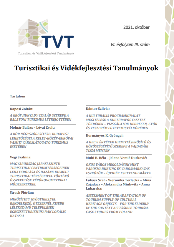 MAGYARORSZÁG JÁRÁSI SZINTŰ TURISZTIKAI CENTRUMTÉRSÉGEINEK LEHATÁROLÁSA ÉS HAZÁNK KIEMELT TURISZTIKAI TÉRSÉGEIVEL TÖRTÉNŐ ÖSSZEVETÉSE TÉRÖKONOMETRIAI MÓDSZEREKKEL